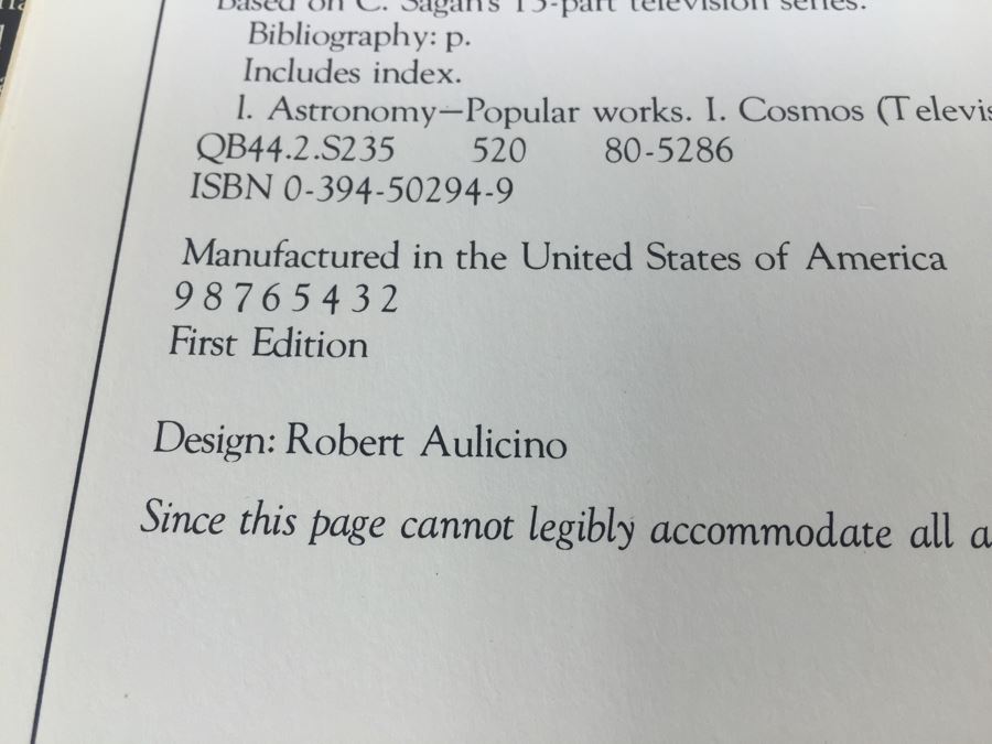 Cosmos Carl Sagan Signed 1st Edition 9th Printing Hard Copy Book