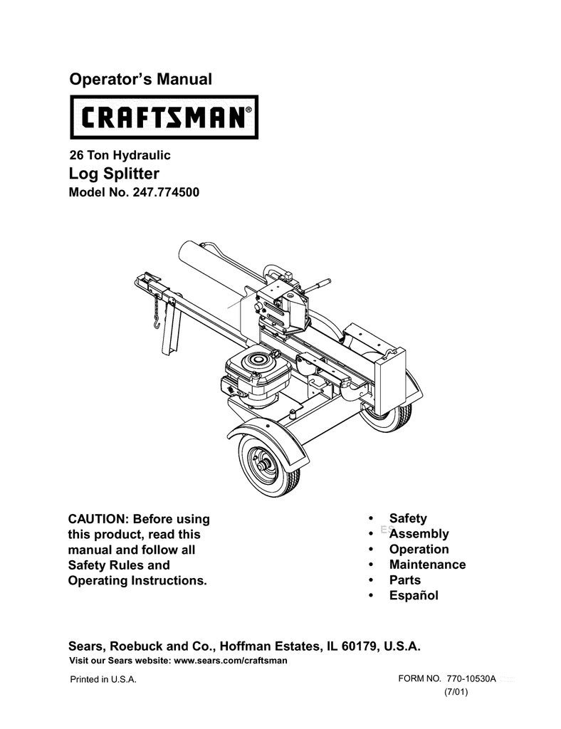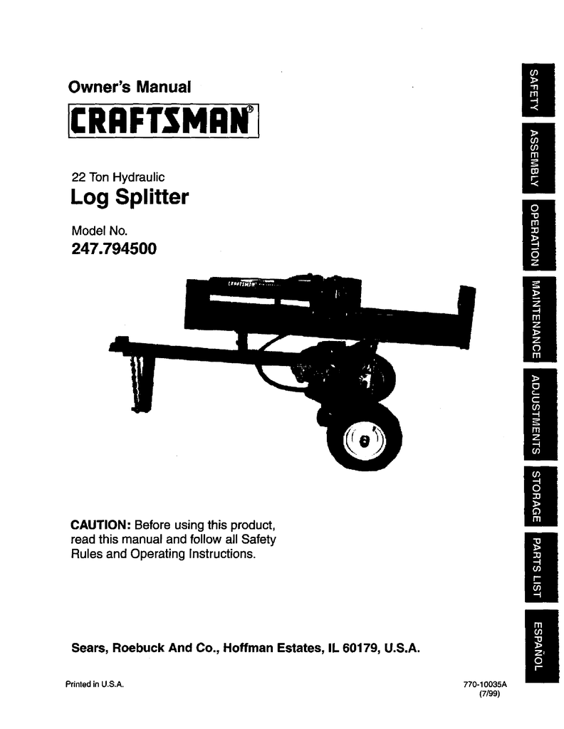 247 794500 Craftsman 22 Ton Hydraulic Log Splitter Owners Manual