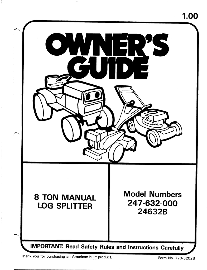 Mtd 24632b Log Splitter User Manual Manualzz