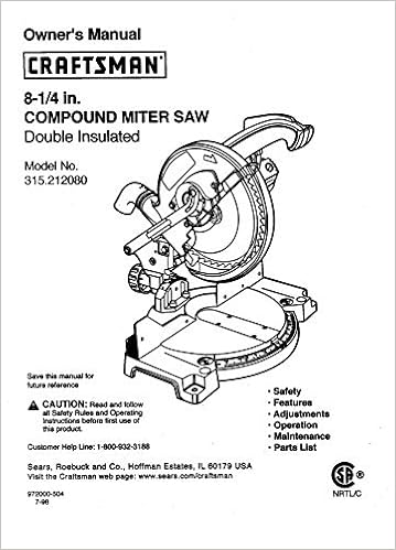 Operator S Manual Craftsman 10 Compound Miter Saw No 315 212500