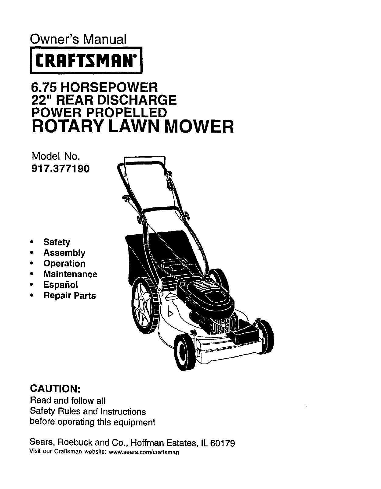 Craftsman 917388340 User Manual 22 Rotary Lawn Mower Manuals And