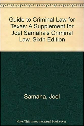 Guide To Criminal Law For Texas A Supplement For Joel Samaha S