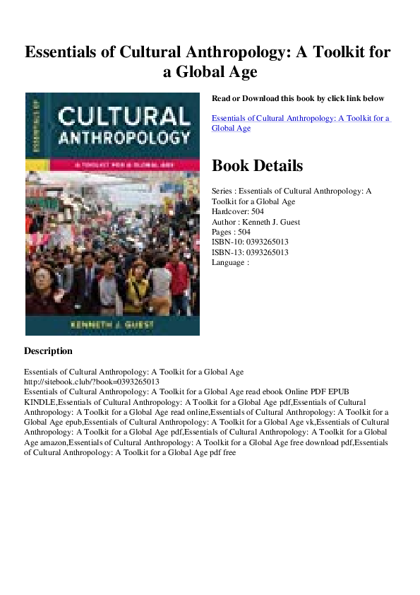 Pdf Book Essentials Of Cultural Anthropology A Toolkit For A
