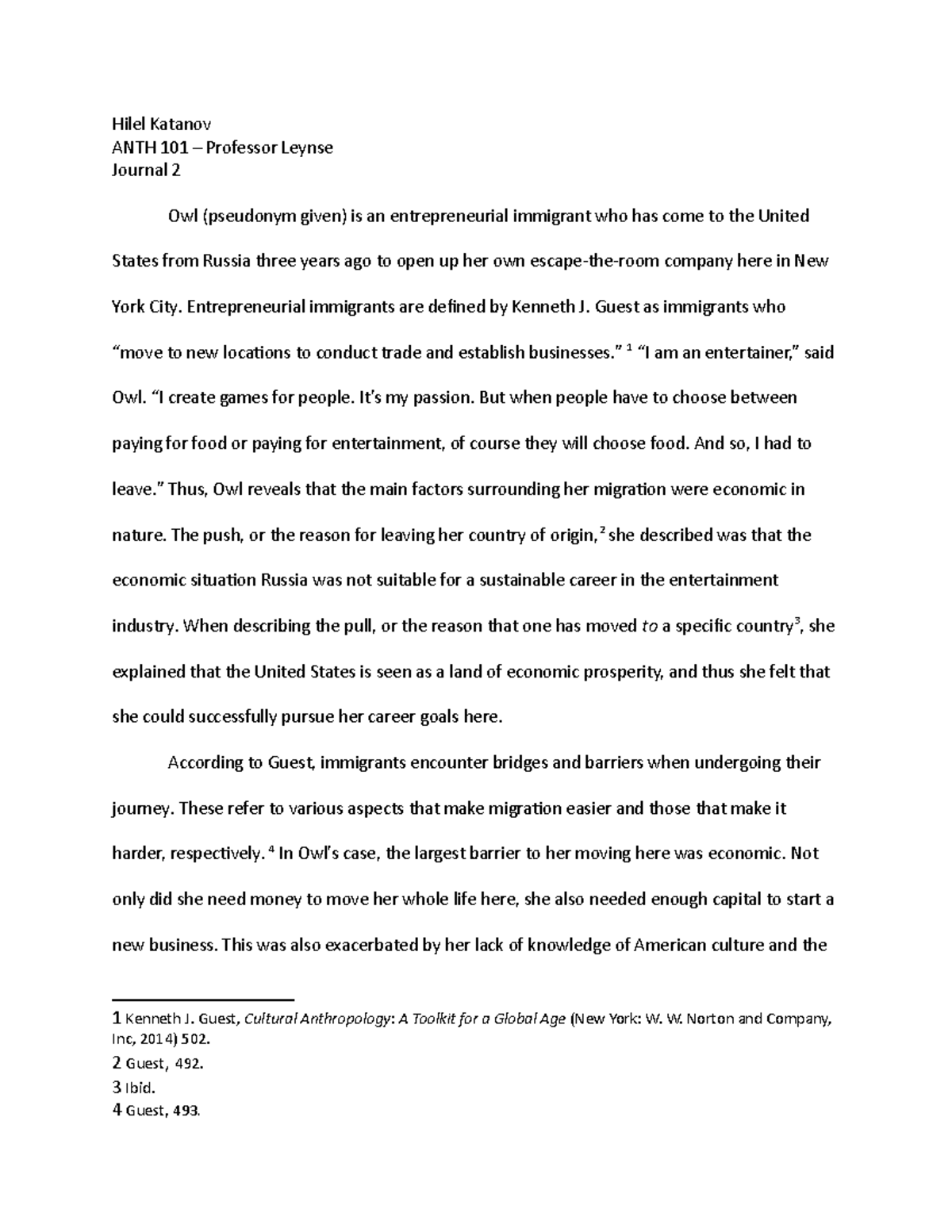Journal 2 Grade A Introduction To Cultural Anthropology Studocu
